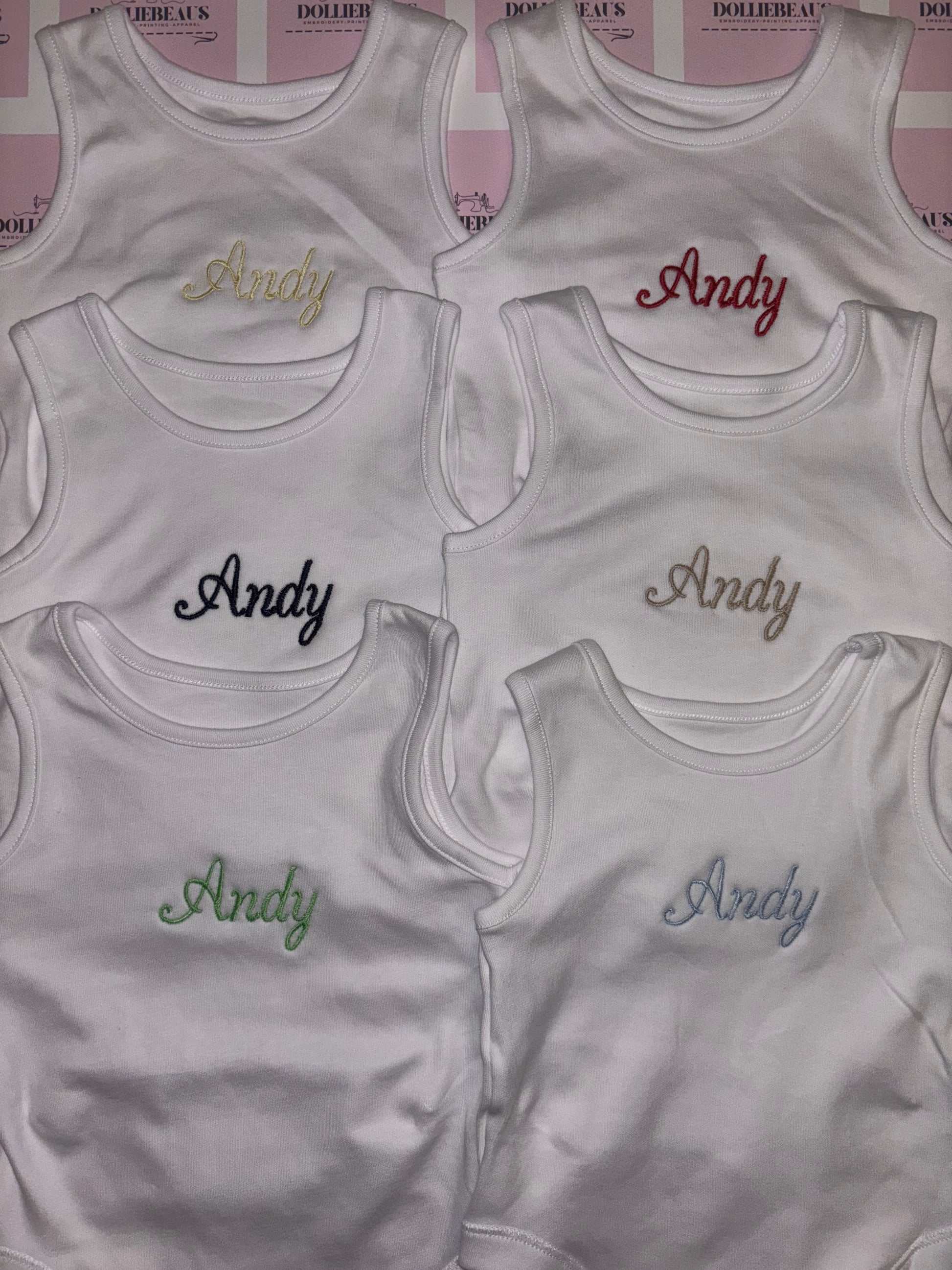 the perfect addition to any outfit! Set of 5 vests personalised with any names.
